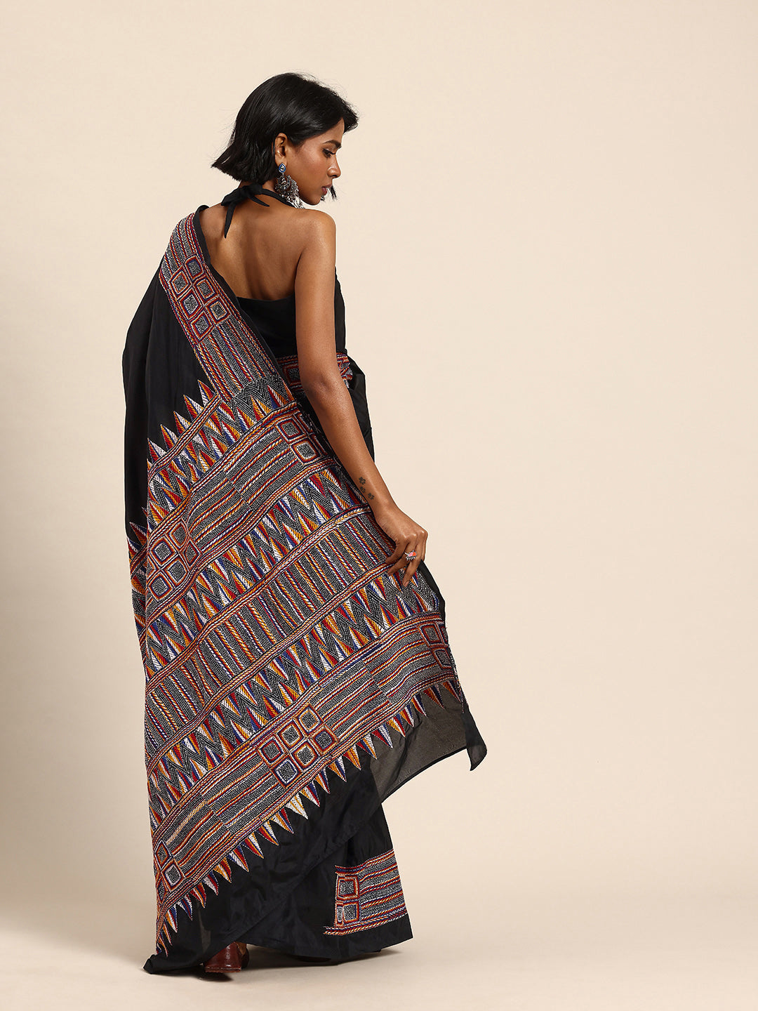 Wrap yourself in the intricate beauty of our ArtEastri Handloom Black Silk Kantha Saree. The traditional kantha embroidery elevates this saree to a work of art, while the luxurious silk fabric adds a touch of elegance. Perfect for special occasions, this saree will make you feel like a refined and sophisticated woman. Includes a matching blouse piece for a complete and stunning look.