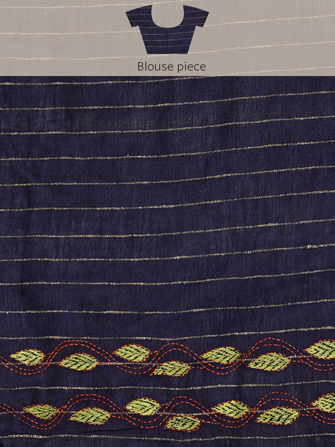 ArtEastri Handloom Blue Ghicha Pallu Kantha Stitch Saree with Blouse piece