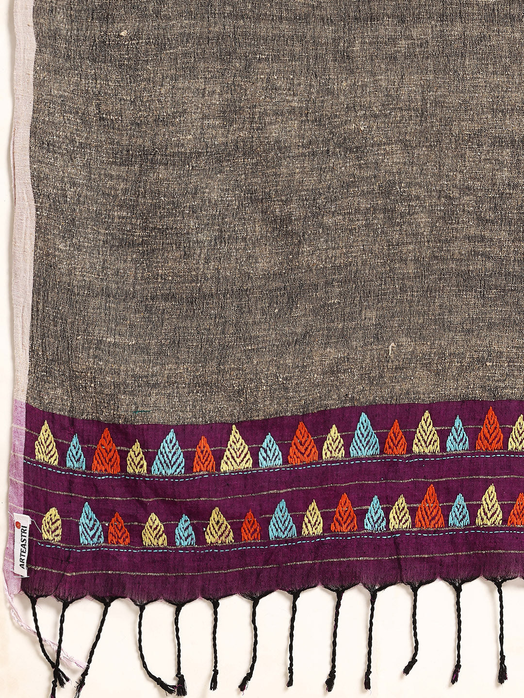 ArtEastri Handloom Purple Ghicha Pallu Kantha Stitch Saree with Blouse piece