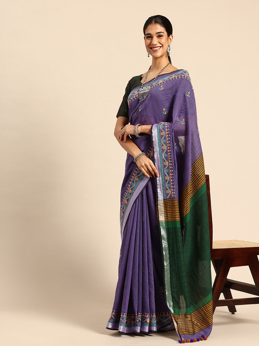ArtEastri Handloom Violet Kantha Cotton Saree