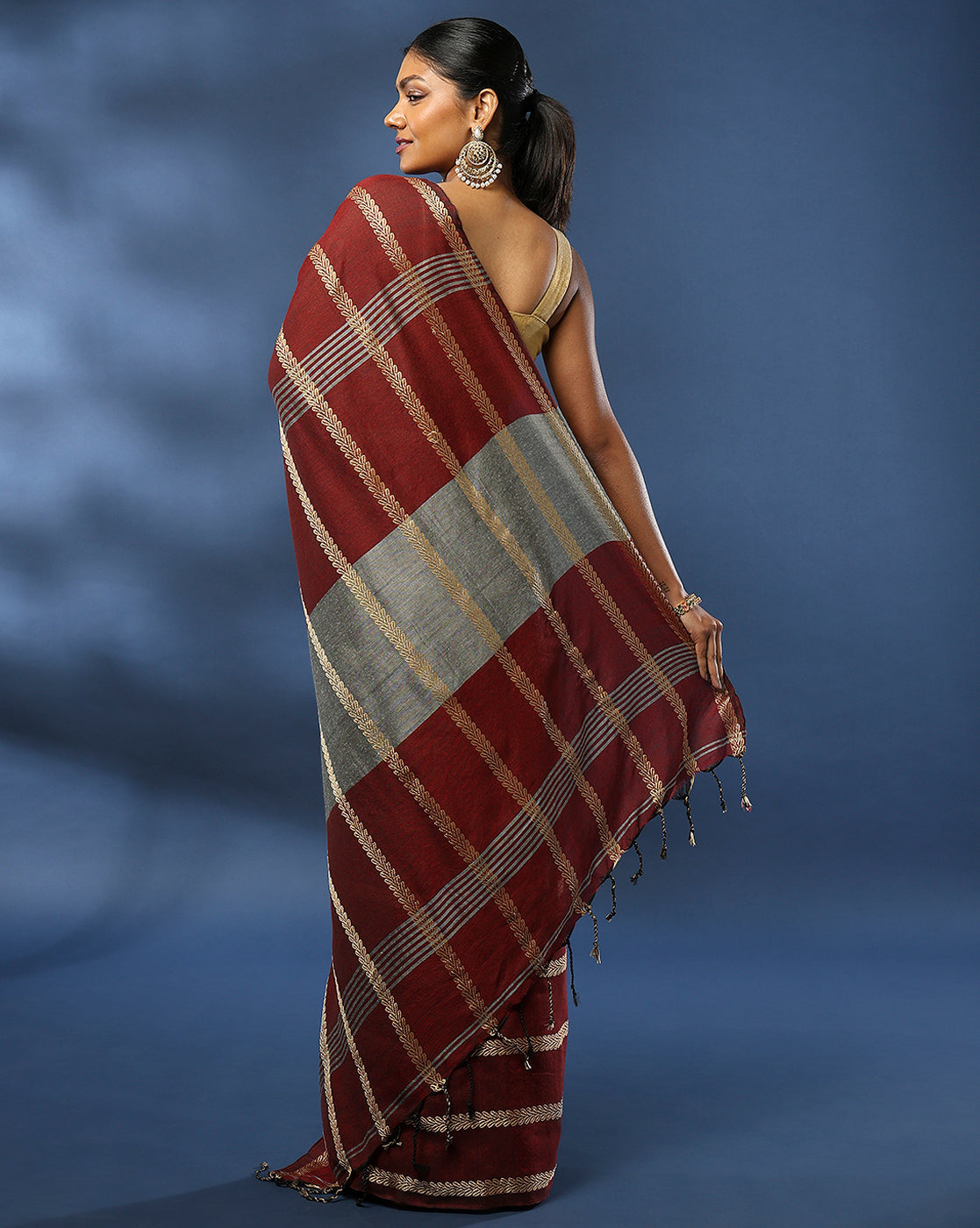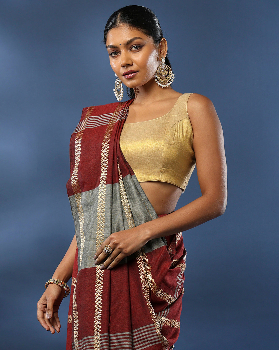 Indulge in luxury with our ArtEastri Maroon cotton Saree. Made from Blended cotton, it drapes elegantly and feels soft on your skin. The perfect balance of comfort and style, this saree comes with a matching blouse piece for added versatility.
