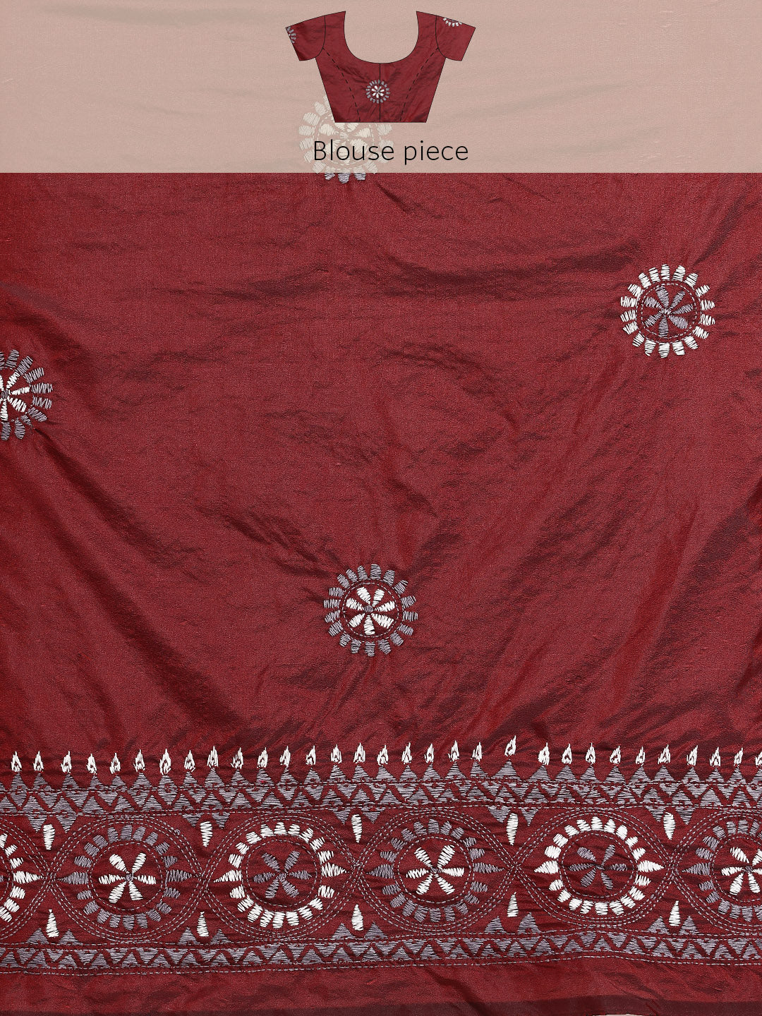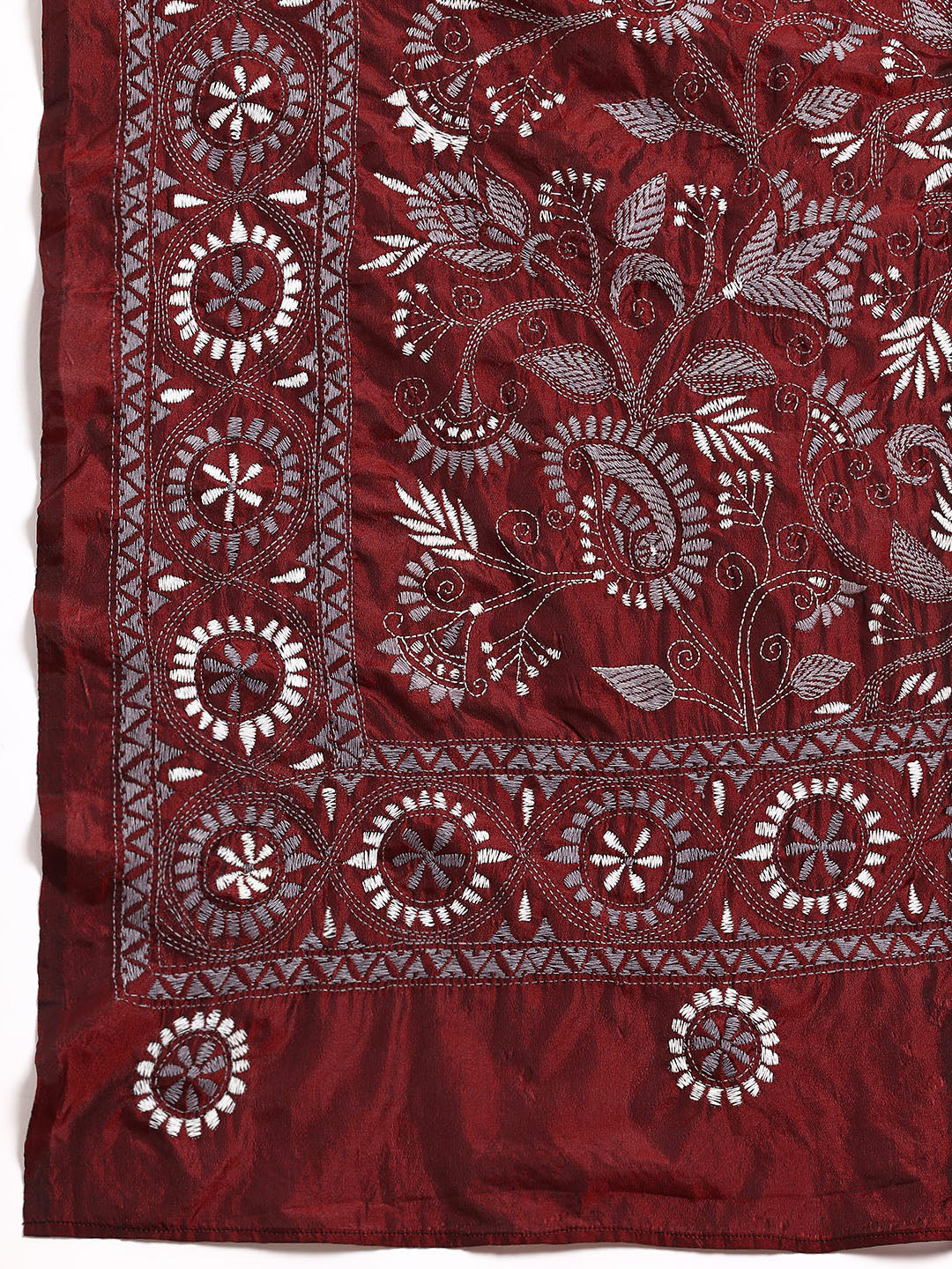 ArtEastri Maroon Grey Silk Kantha Saree with Blouse piece