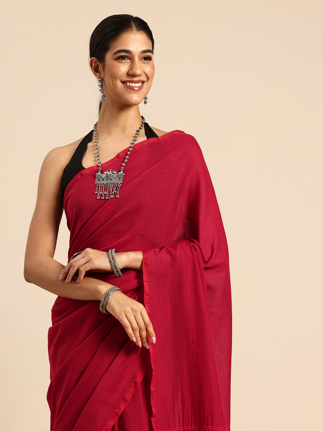 ArtEastri Maroon Magenta Solid Cotton Saree with Blouse piece