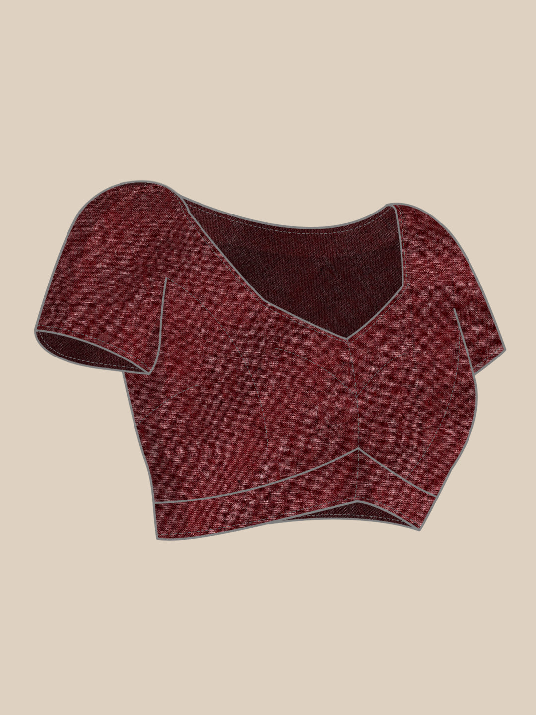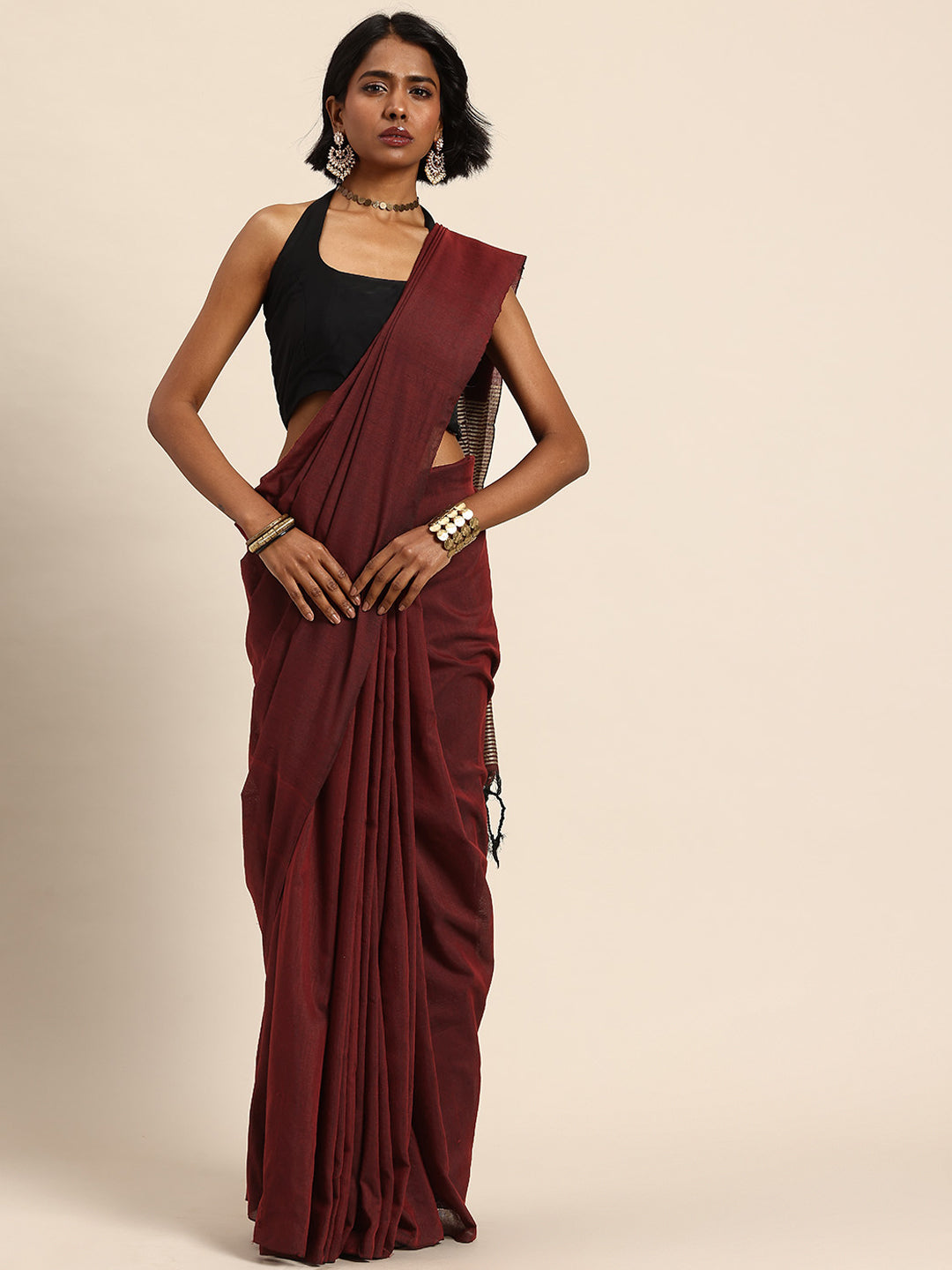 ArtEastri Maroon Solid Cotton Saree with Blouse piece