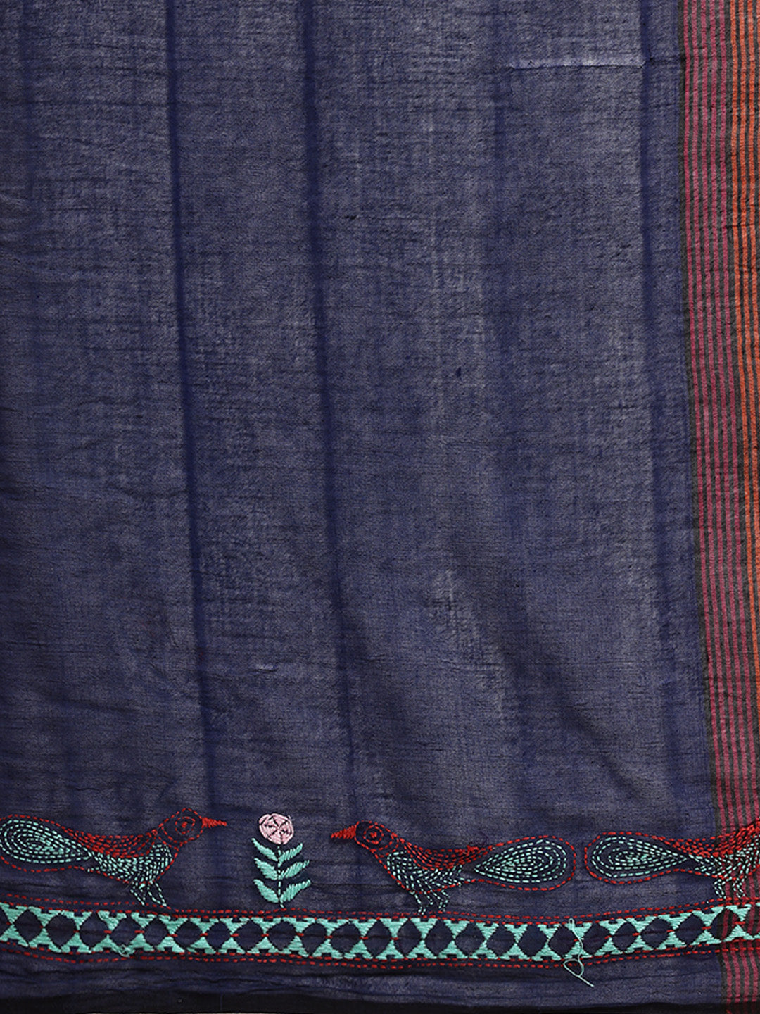 ArtEastri  Handloom Navy Colour Block Cotton Kantha Saree