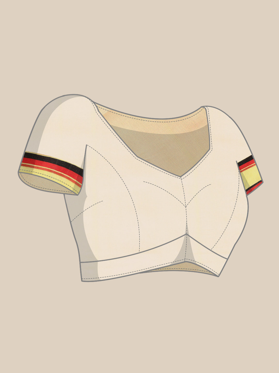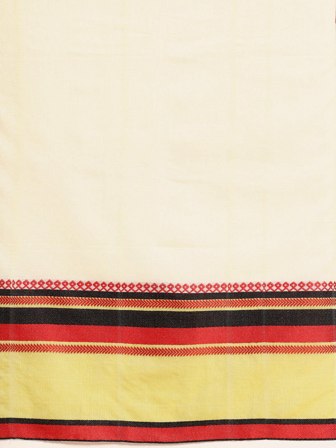 ArtEastri White Green Red Cotton Saree with Blouse piece