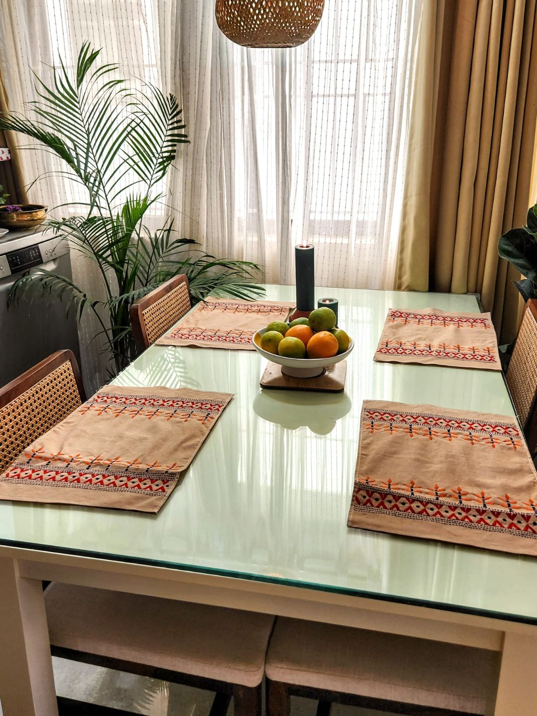 100% Cotton hand kantha embroidered placemats set of four is perfect for protecting your dinner table from water marks, food stains or heat damage. You can use these placemats set for everyday dining as well as for special occasions. It just adds a unique flavor to your overall home decor!