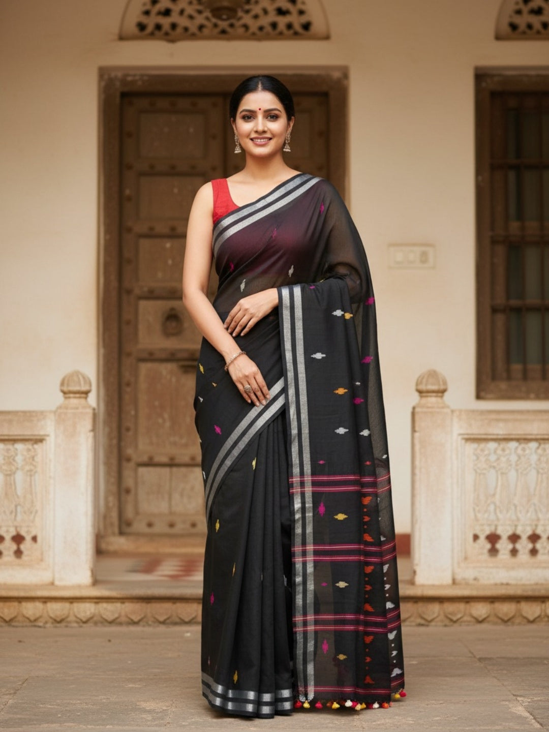Experience the rich tradition and elegance of our Handloom Jamdani Cotton Saree. Made with intricate jamdani weaving, this saree is a statement piece that exudes timeless beauty. Embrace the comfort and sophistication of this luxurious fabric and elevate your wardrobe effortlessly.