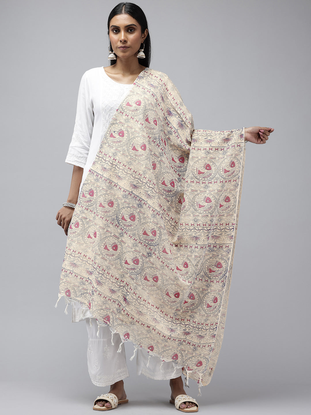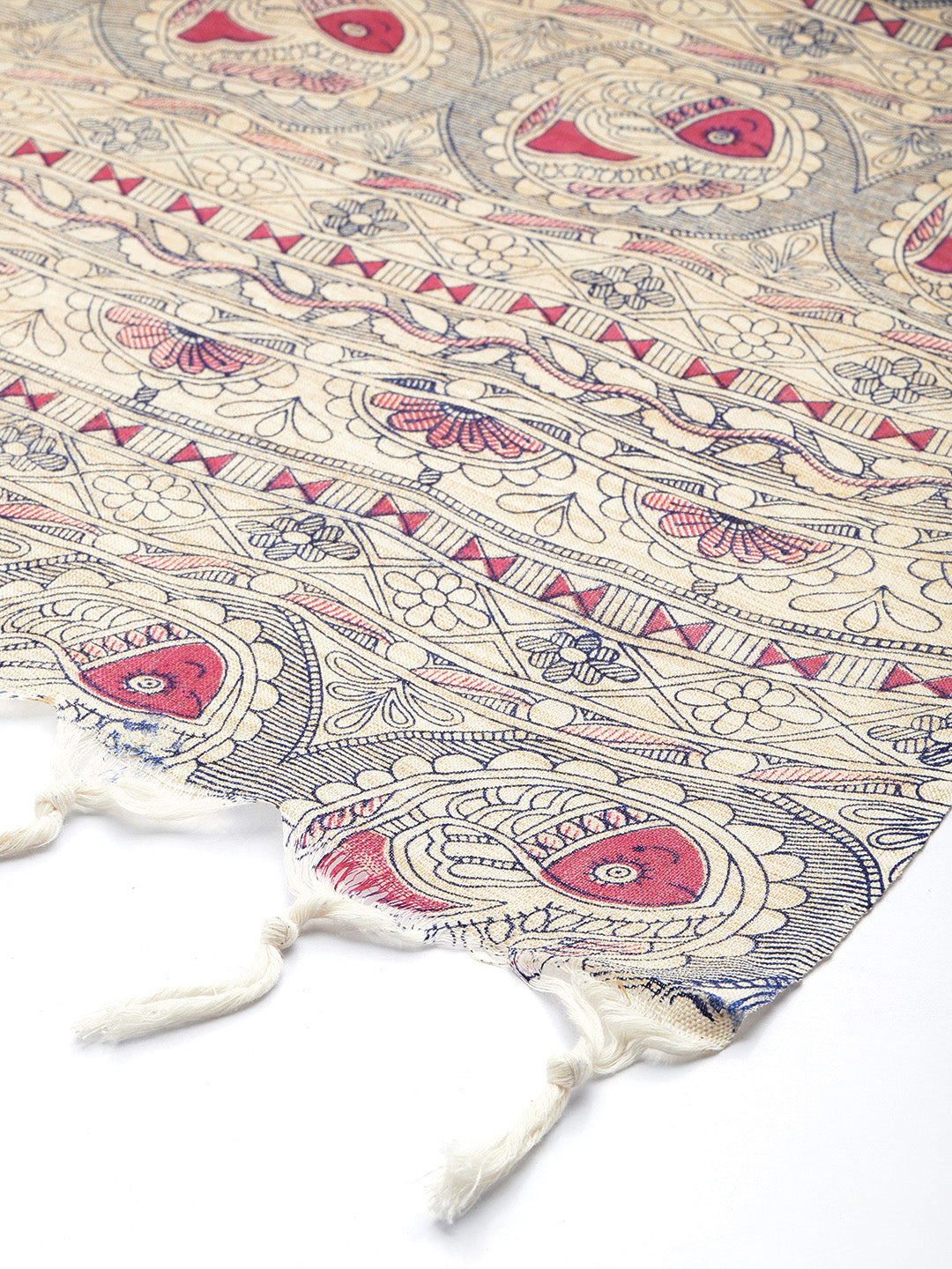 Elevate your ethnic look with our Blue Red Madhubani Print Dupatta. Handcrafted with intricate madhubani designs, this...