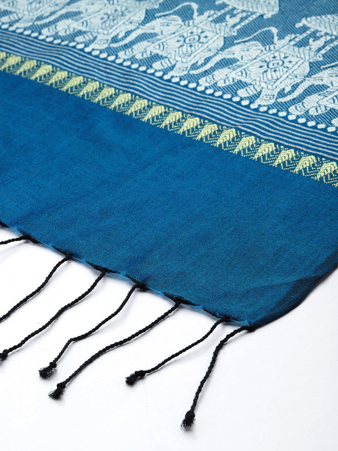 Blue White elephant Motif Cotton Baluchari dupatta Handloom