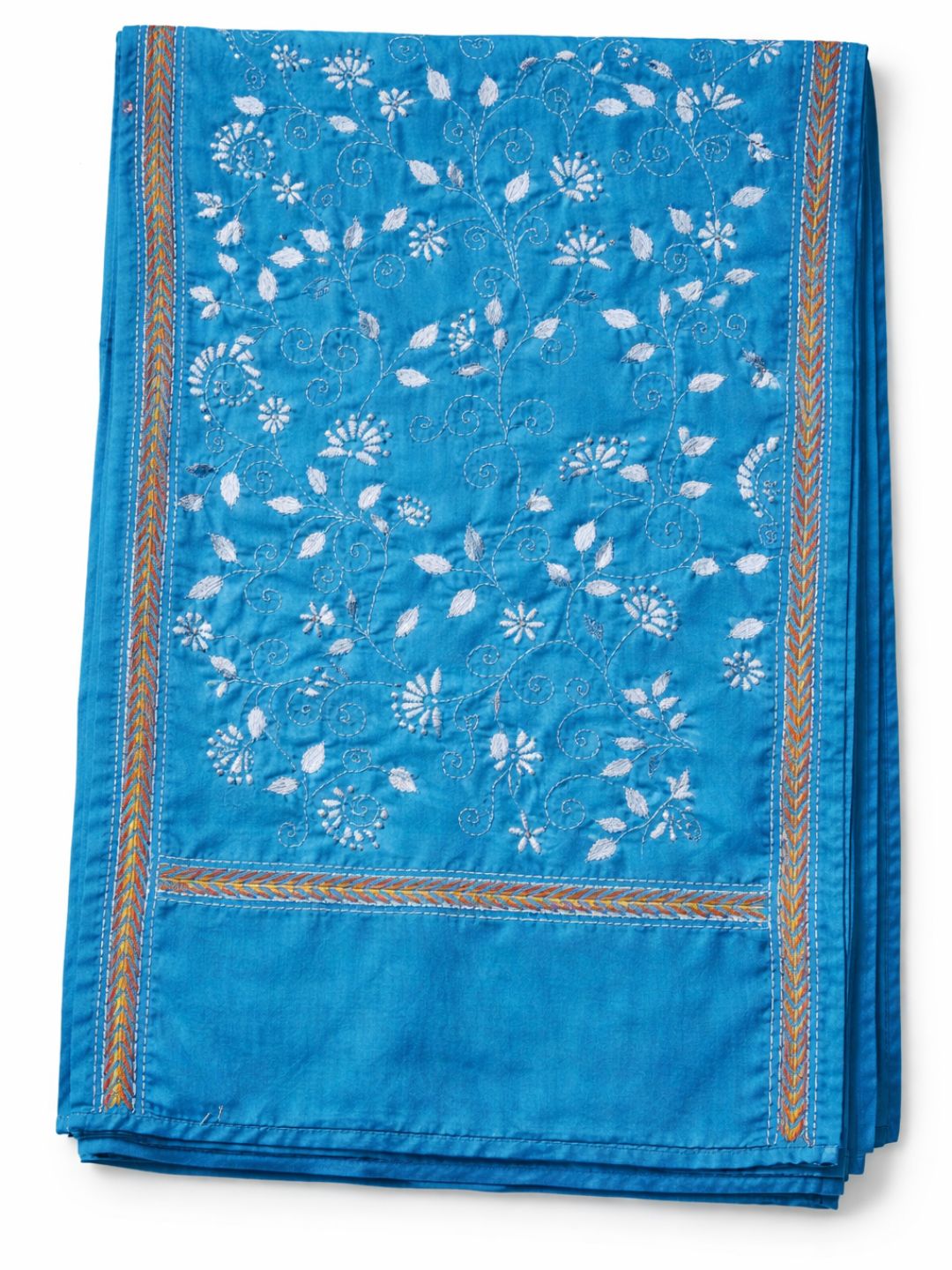Step out in a uniquely handcrafted Blue white Floral Kantha stitch cotton stole. The motifs on our stoles only give expression to the artisans observations of everything occurring naturally around her, beautifully brought to life with her hand-embroidery. This cotton kantha stole can be your best casual summer fashion accessory.