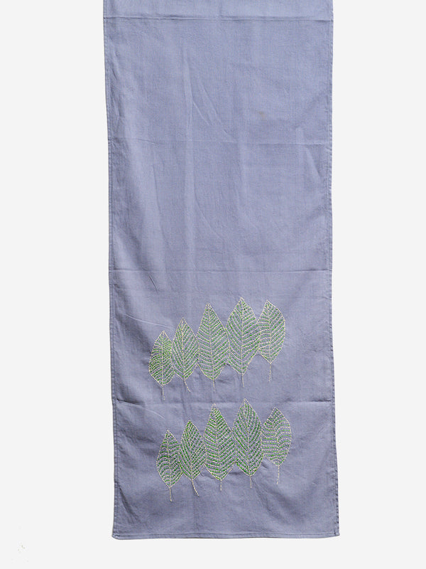 Explore the world of bengali folk art in our exclusive grey hand kantha embroidered cotton table runner. ArtEastri Kantha table runners are just the jazz your sweet home deserves.