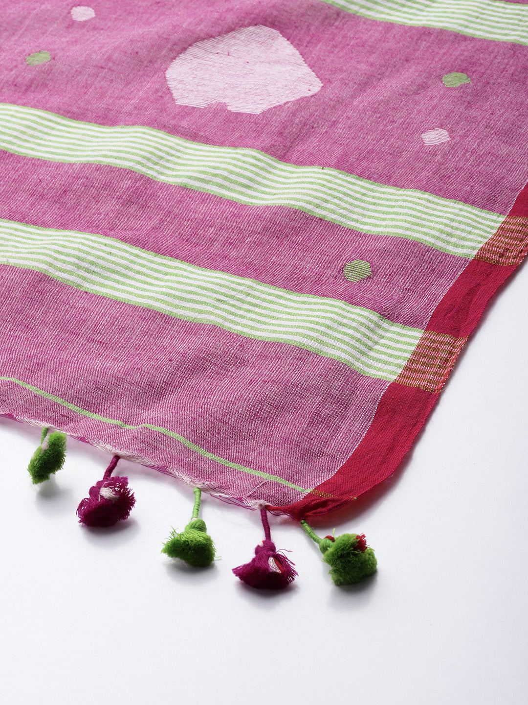 Wrap yourself in luxury with our Lavender Handloom Jamdani Cotton Dupatta. This handcrafted piece features delicate jamdani...