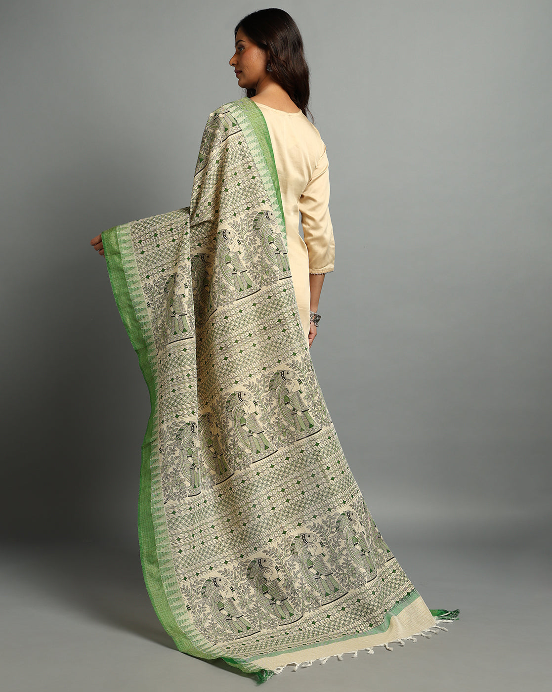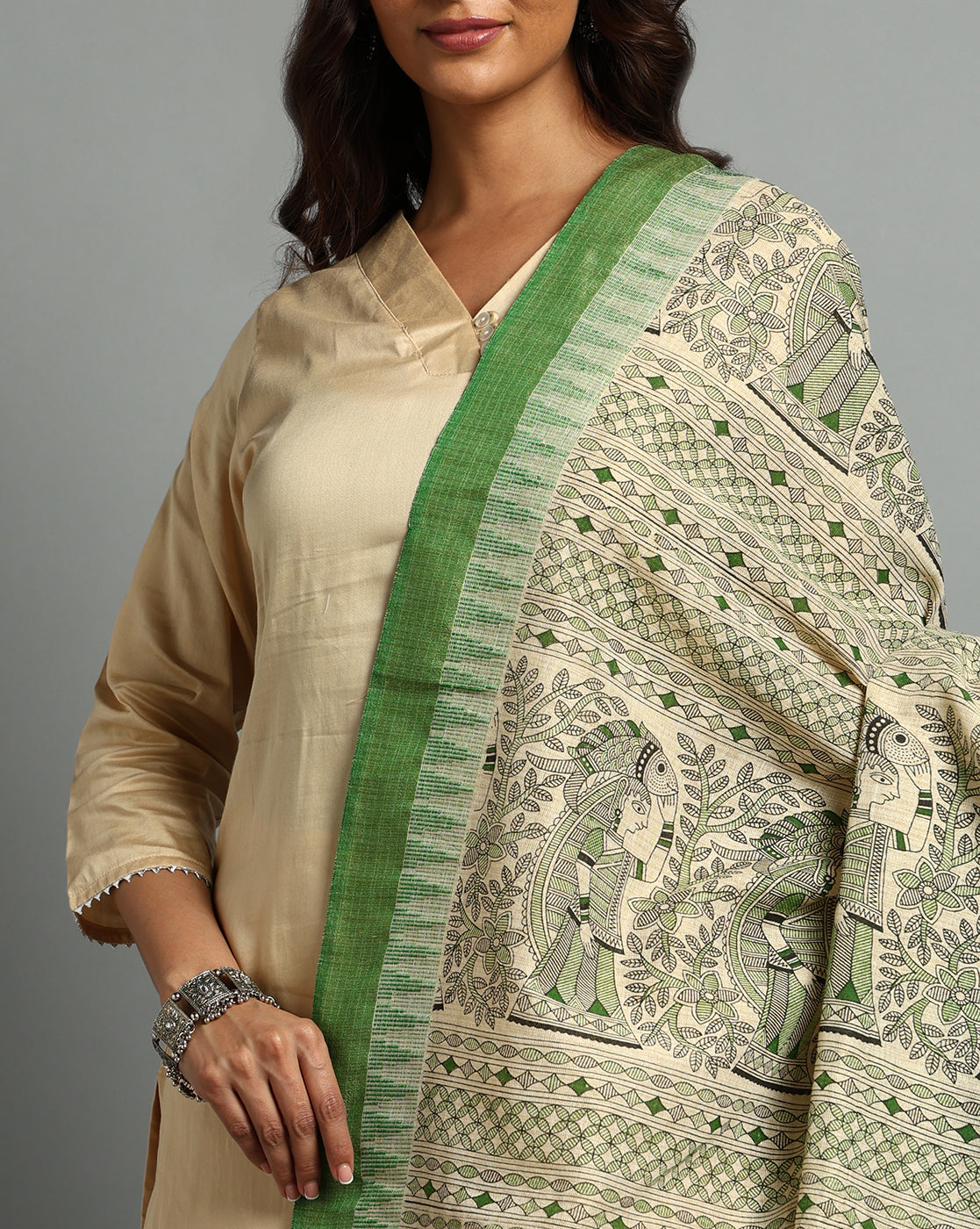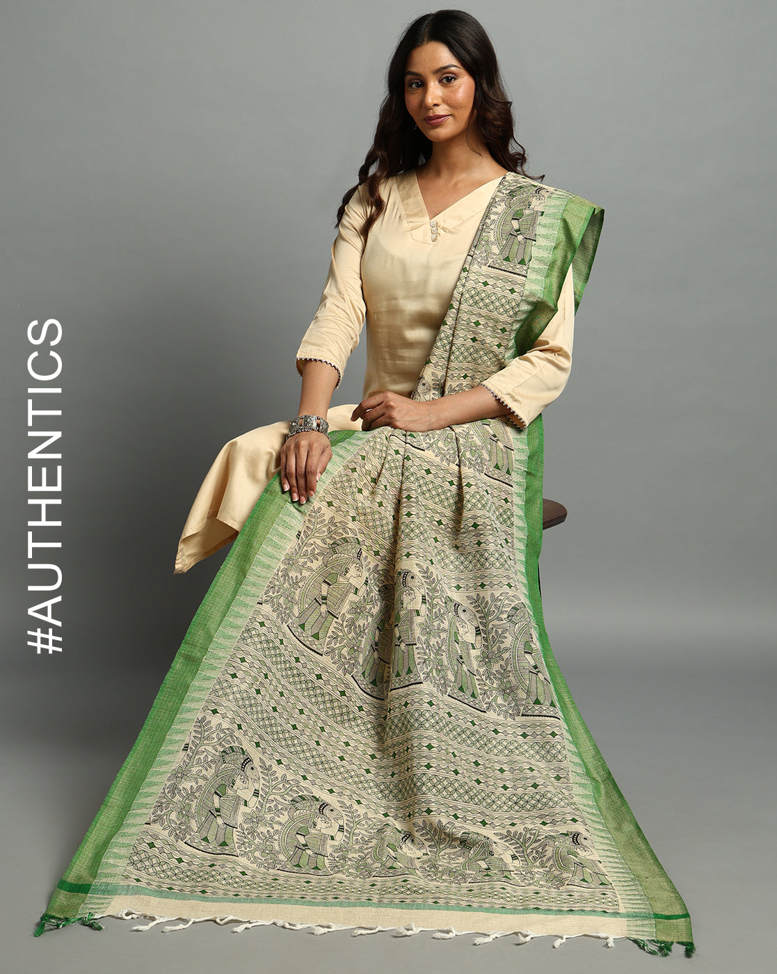 Elevate your ethnic look with our Pure Cotton Madhubani Print Dupatta. Handcrafted with intricate madhubani designs, this...