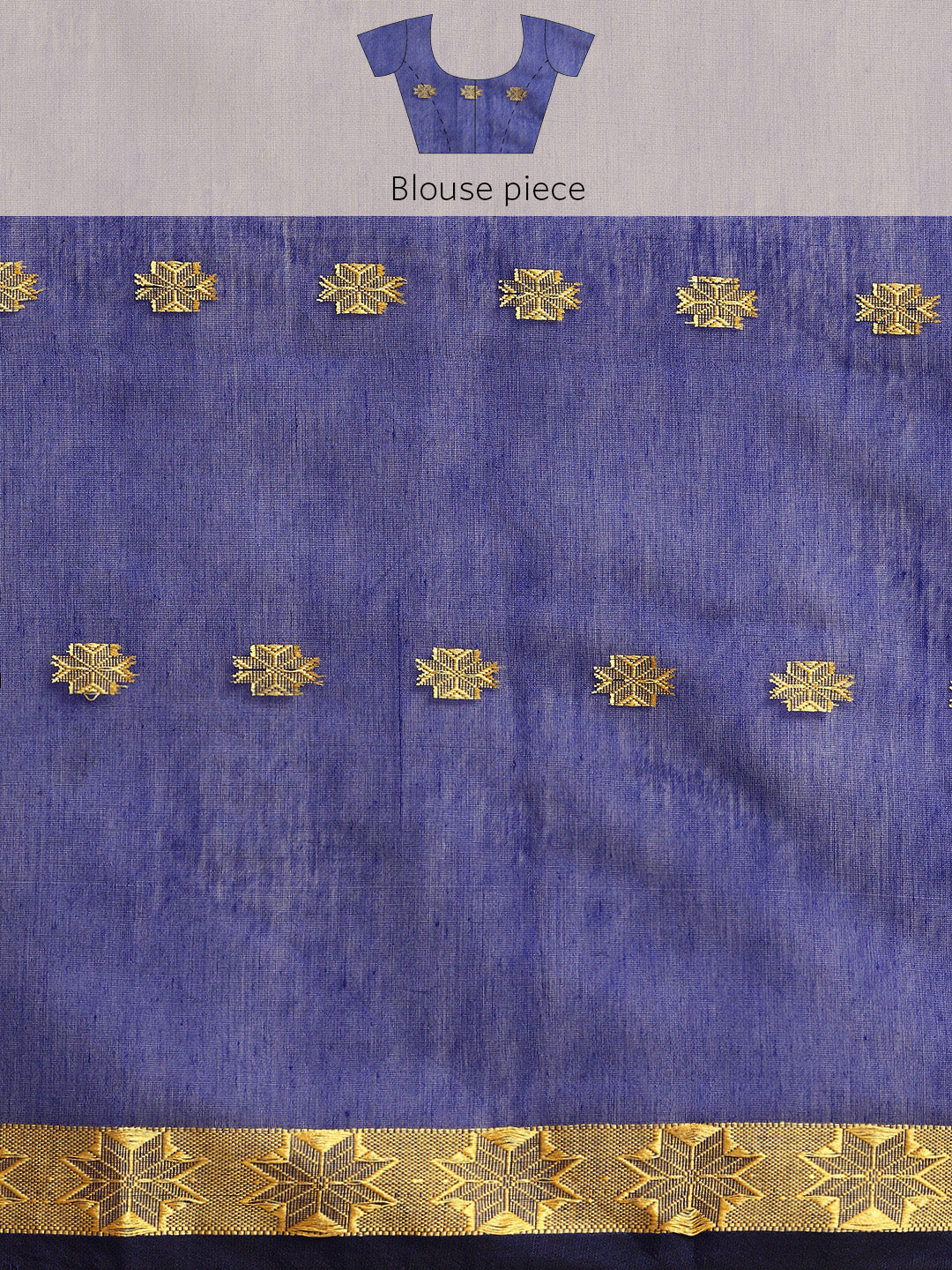 Blue & Red Zari Buti Silk Cotton Saree with blouse piece